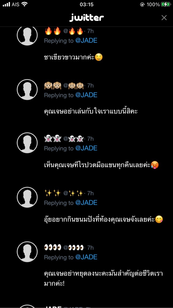 JADE @JADEReplying to @JADE@👀👀 สำคัญขนาดนั้นเลยหรอครับคนสวยของเจษ @✨✨ มีกินเลยครับเดี๋ยวเจษเตรียมรอครับคนสวย @👻👻 ให้เจษช่วยไหมคะ