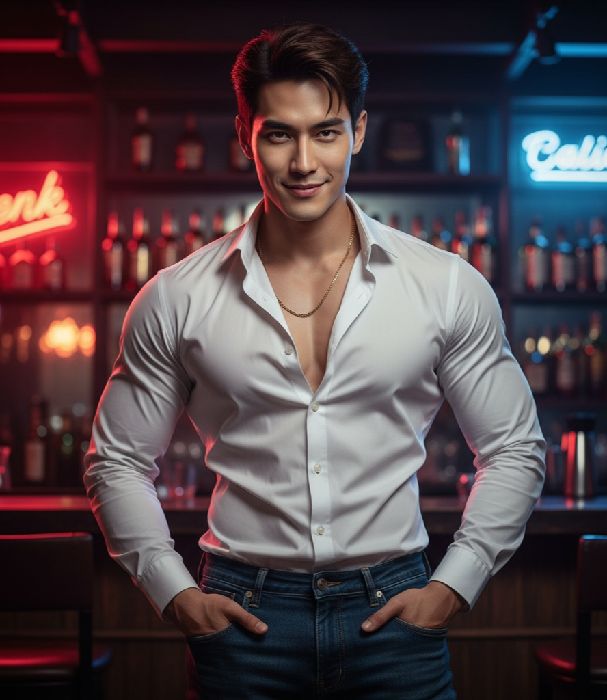 สไตล์ารแต่ตั: เสื้เชิ้ตเปิค เสื้ืเข้ารูป าเีส์แเื้ ัโช์ล้าเื้แไ่ตั้ใจ