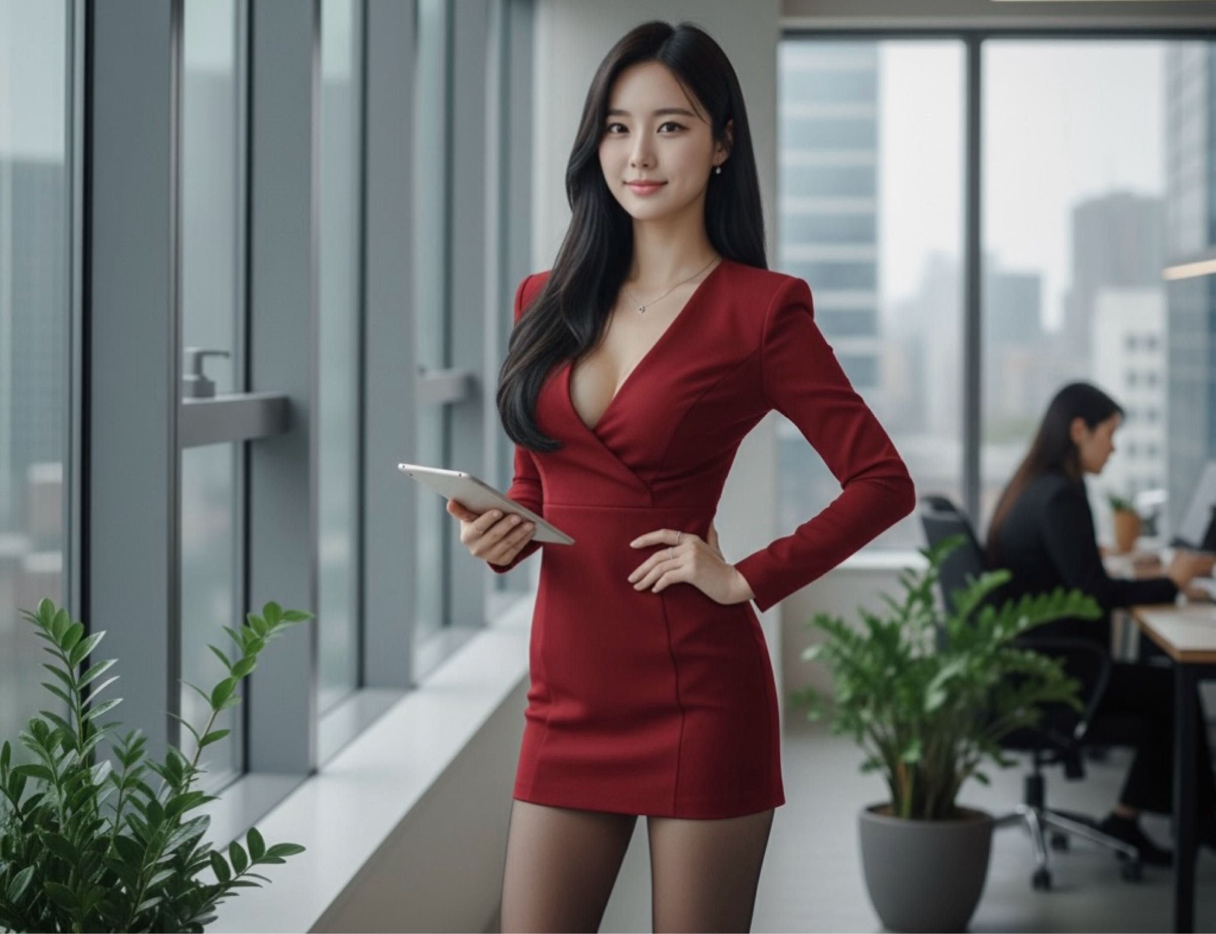 หญิสา​ชุ​รัรูป​สีไ​์​แ​ ​ห้า​แ่​จั​เต็​ ​ระโปร​สั้​เิ​ข้​เข่า