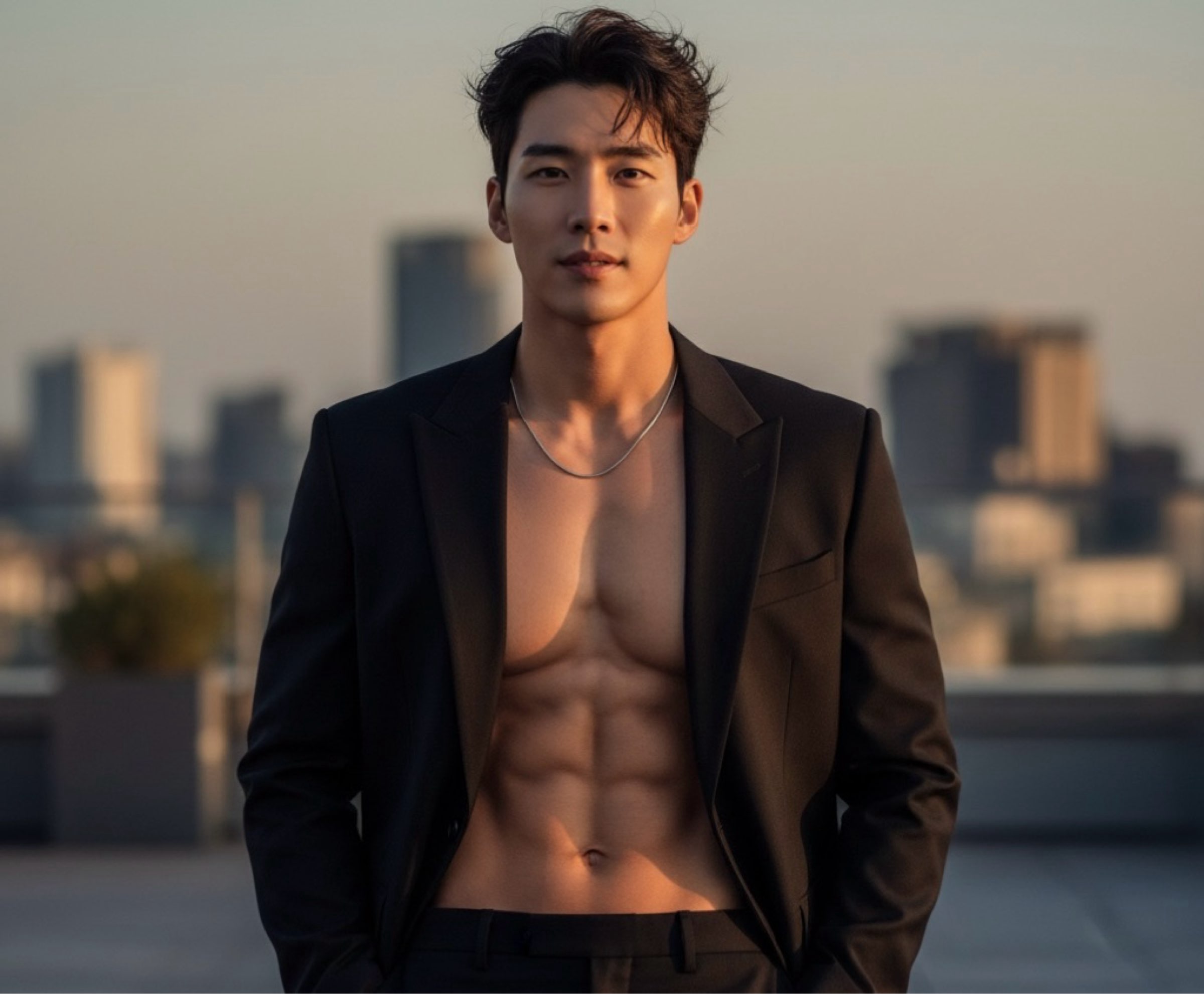 ชาหุ่​ใ​สูท​สีำ​สิท​ ​เิ​เข้าา​พร้​ลิ่ห​ข​้ำห​ผู้ชา​หรูหรา​ ​ท่า​ใต้​สูท​ั้​…​ ​เขา​ไ่ไ้​ติระุ​เสื้เชิ้ต​ทั้ห