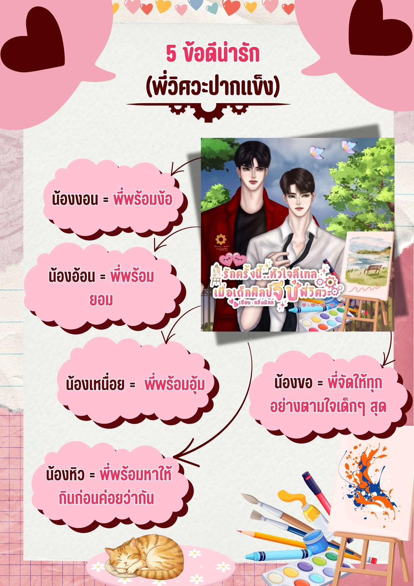 พี่ิศะที่ไ่เคชาตาใคร ไ่เคิ้ ไ่เค่ข้ให้าที่ไ่สูรณ์แ... และั่ิ่ทำให้พี่เขาีเส่ห์ใสาตาขเ็ศิลป์ที่เต็ไป้สีสัคี้ "ผไ่ไ้าเป็ลูซูเปร์สตาร์ ผแค่าู่ใสาตาขพี่คาิลคเี็พ" ั่คืคาตั้ใจที่ริสุทธิ์ขลีเทล