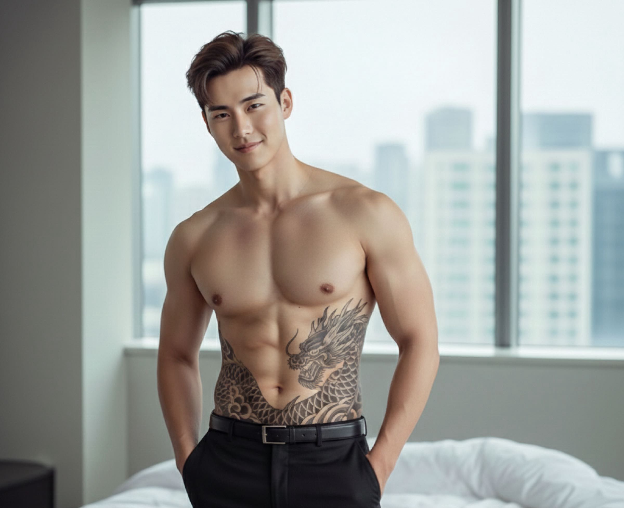เขาระซิข้าหูเสีพร่า ่จะื่ืไปปลเข็ขัตัเ่าไ่รีร้… เส้เลืปูแขแร่ และรสัลาัรริเณห้าท้โผล่ให้เห็ เหืจะเตื่า เจค ไ่ใช่แค่เพล์ธรรา