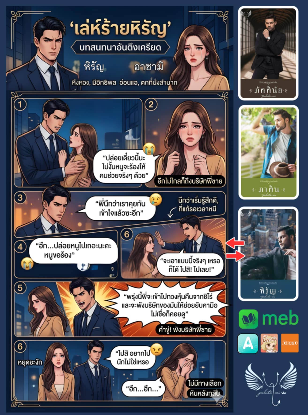 พขัรถไปถึ้าพัขเพื่ไ้ไ่า ภาคิ็ขัรถตาา และแสท่าทีาชัเจ่าไ่โเคัเธ ั่สร้าคาระัระ่ใจเป็่าา แต่เธ็ัฝืู่ต่่าึๆ เพราะีคุณ ัศาและคู่แฝขภาคิ ที่ชื่่า…ภัคคิัาร่้