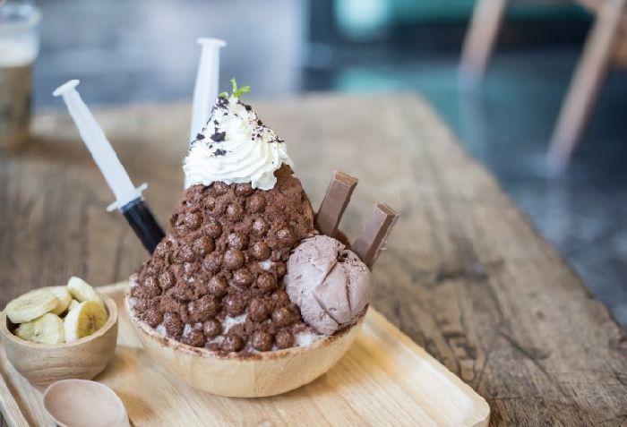 Jinทำช็อคโกเเล็ตปั่นเเล้วก็บิงซูช็อคโกเเลตให้โต๊ะ10หน่อยสิ