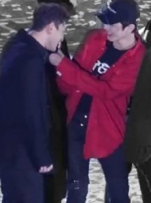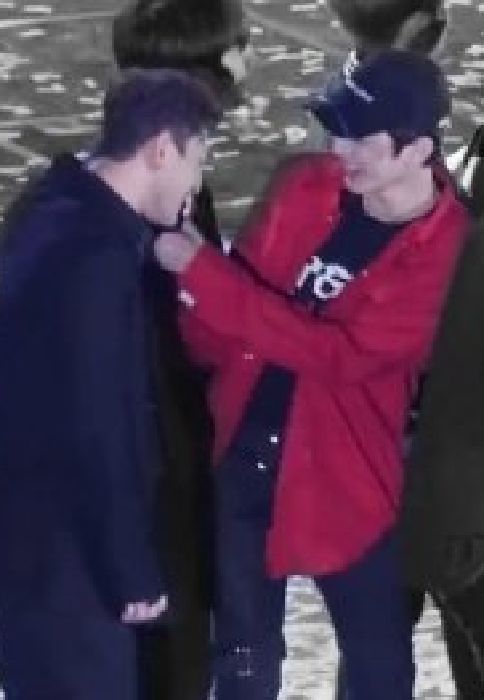 หลินเดินเข้าไปใกล้แดนแล้วใช้ฝ่ามือทั้งสองข้างประคองใบหน้าของแดนไว้