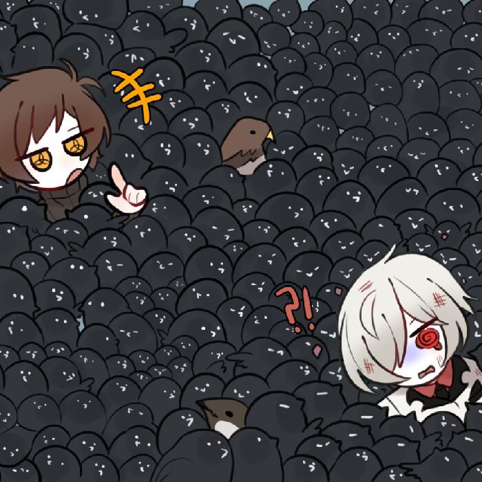 つゆき しゅへいซวยโดนนกไล่ครับ แล้วหนีไปซ่อนในห้อง...และมันยังหาทางตามเข้ามา แล้วบังเอิญฮายาบุสะมาหาพอดีเลยโดนกองทัพนกถล่มด้วยกันจนเป็นอย่างที่เห็นในภาพนั้นแหละครับ reply
