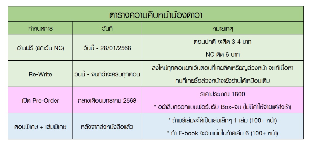 4. สำหรับนักอ่านที่กังวลว่าจะเกิดการ Trigger ในบางบทที่มีความรุนแรง จะมีสรุปย่อไว้ด้านบนสุดอย่างละเอียดในสิ่งที่จำเป็นต้องรู้ ไม่ให้อ่านแล้วเกิดการขาดตอน ทั้งนี้ เผื่อว่าจะมีนักอ่านที่ไม่สามารถรับได้จะได้ระมัดระวังไว้ได้ทัน แต่ถ้ารับได้ก็อ่านเนื้อหาจริงได้เลย