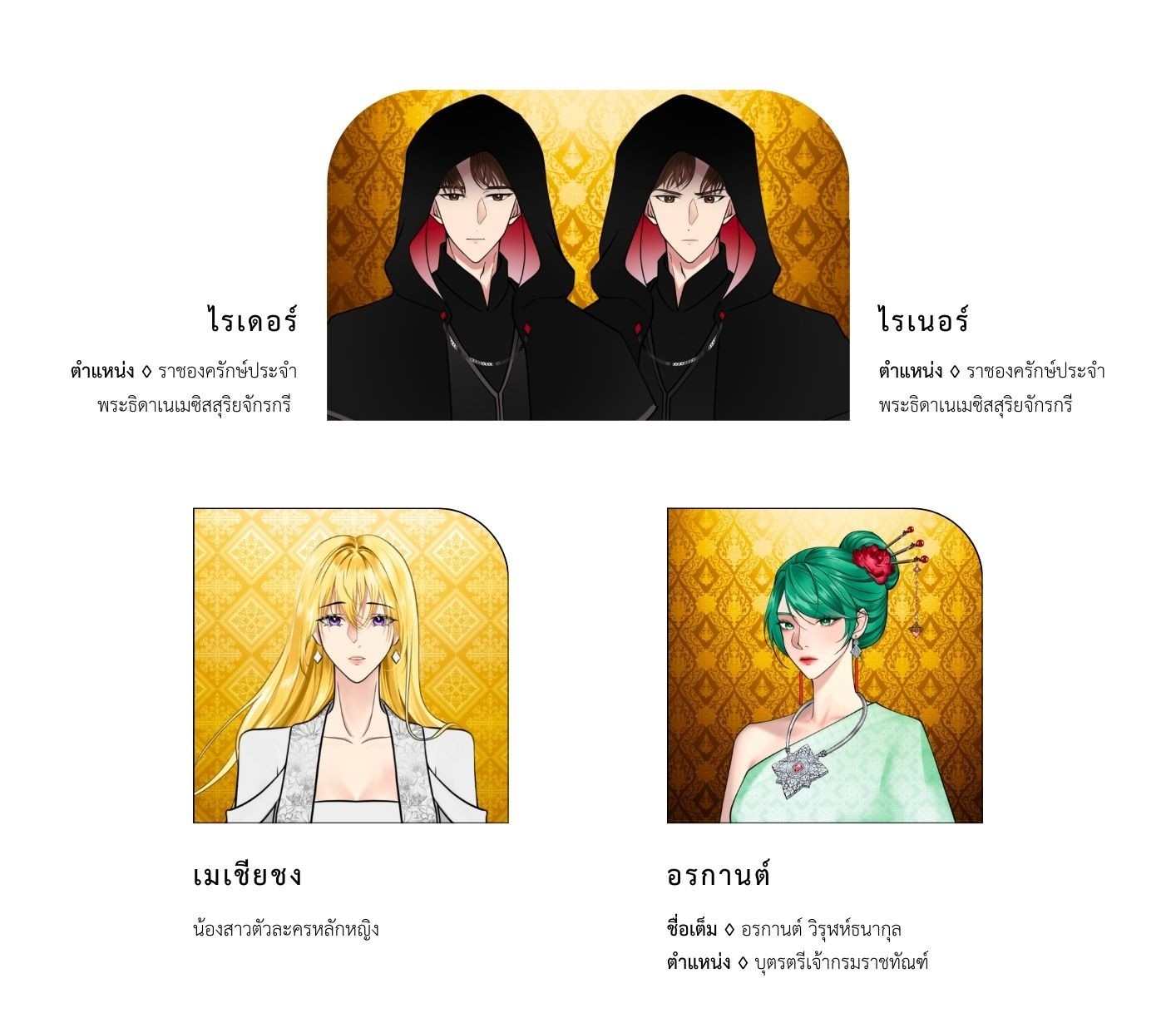ผลงานที่เกิดจากจินตนาการของผู้เขียนทั้งหมด ตัวละคร พฤติกรรม หรือการใช้ภาษาที่ปรากฏในเรื่อง ไม่ได้มีความเกี่ยวข้องกับเหตุการณ์ทางประวัติศาสตร์หรือบุคคลในชีวิตจริง วัฒนธรรมในเรื่องเป็นการผสมผสานจากหลายแหล่ง โดยไม่ได้มีเจตนาโจมตีดูหมิ่นชาติ ศาสนา หรือวัฒนธรรมใดๆ ทั้งสิ้น โปรดใช้วิจารณญาณในการอ่าน