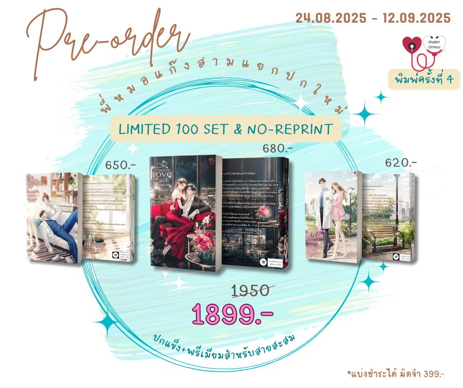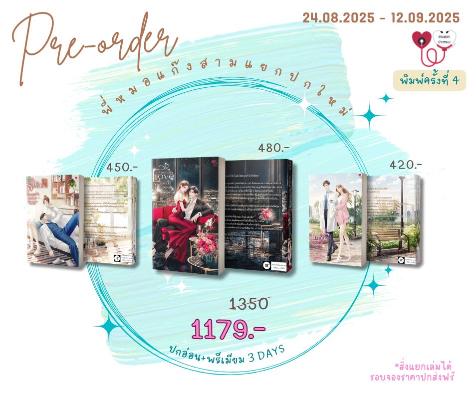 ตอนนี้ที่เพจของไรต์เปิดให้จองเล่มพี่หมอปกใหม่อยู่นะคะ ใครอยากมีเล่มสวยๆไว้สะสม ตามไปจองได้เลยค่า