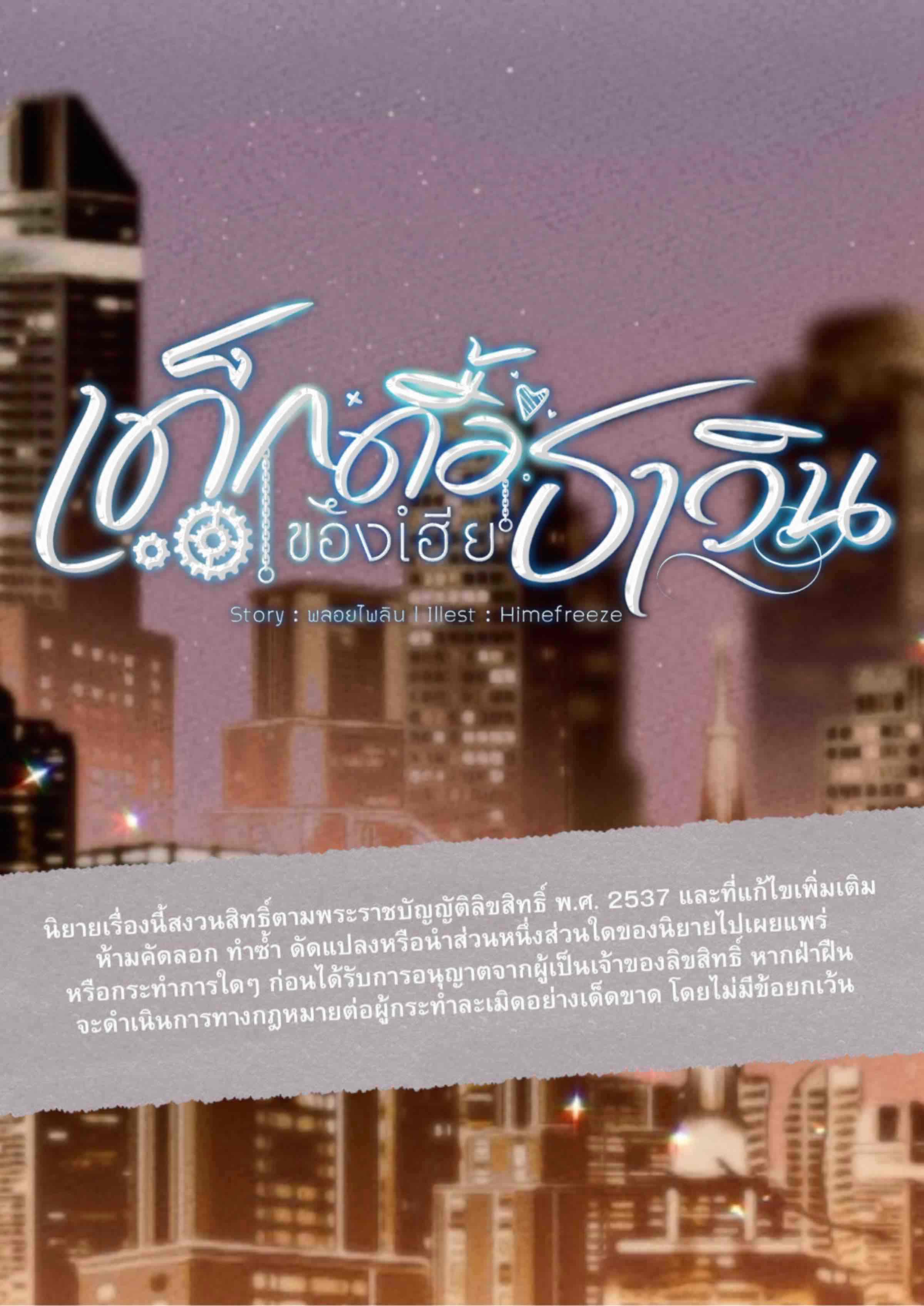 นิยายเรื่องนี้เป็นเพียงจิตนาการของนักเขียนเท่านั้น ตัวละคร สถานที่ อาจมีส่วนคล้ายคลึงกับบางสถานที่ บางเหตุการณ์แต่มิได้มีเจตนาล่วงเกินหรือพาดพิงบุคคลใดในชีวิตจริง หากผิดพลาดประการใดจึงขออภัยมา ณ ที่นี้