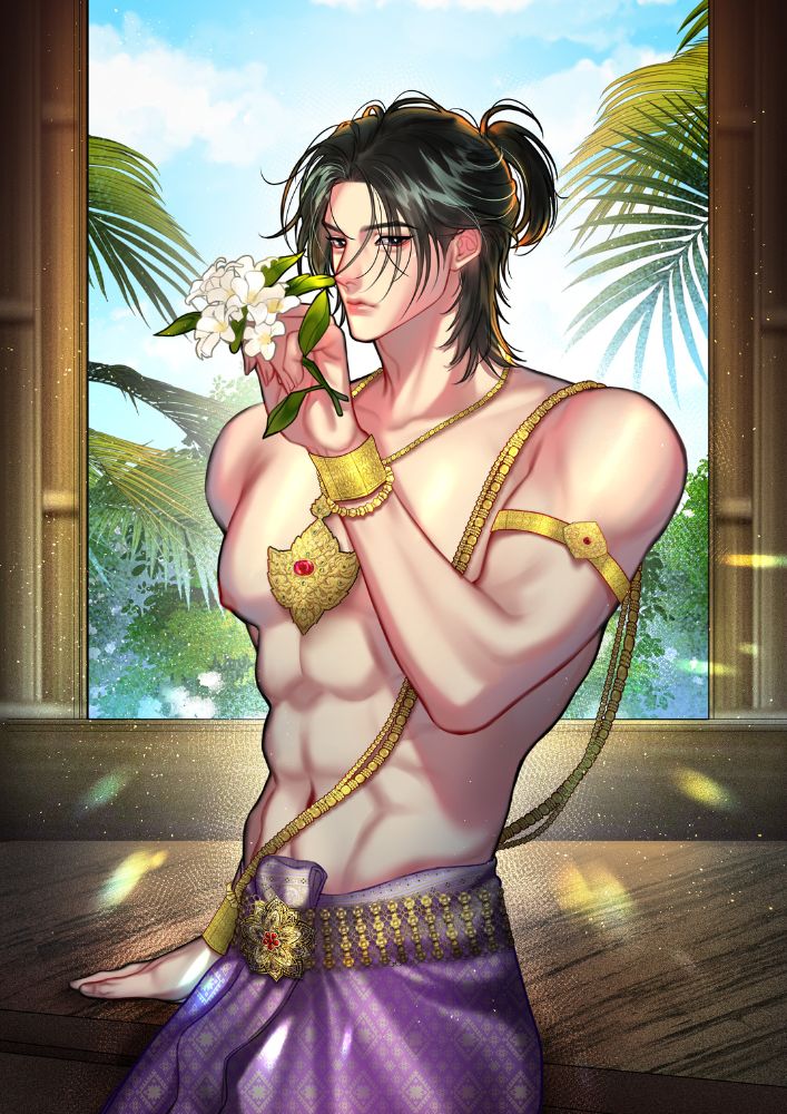 ดวงตาคมจ้องสบประสานกันพลางเอ่ยวาจาแย่งคณิกาอย่างแม่กุหลาบกันอีกครั้ง โดยมีแม่กุหลาบนั่งลงช้า ๆ พยายามจะแก้ไขสถานการณ์ให้ดัขึ้น
