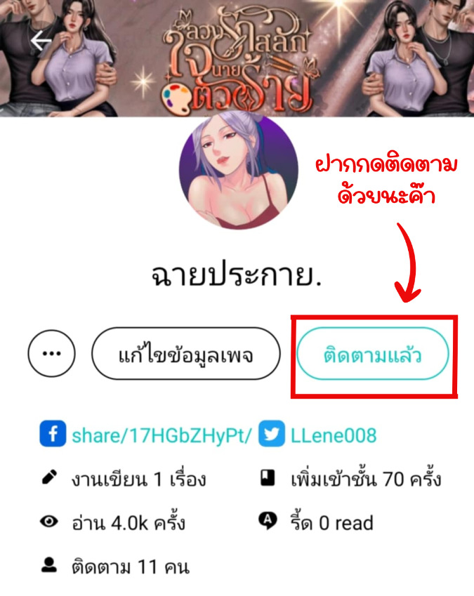 ช่องทางสปอยงานเขียน ตต ฉายเองจ้าาา สามารถพูดคุยทวงงานหรือขอดูรูปภาพประกอบได้นะคะ อิอิ