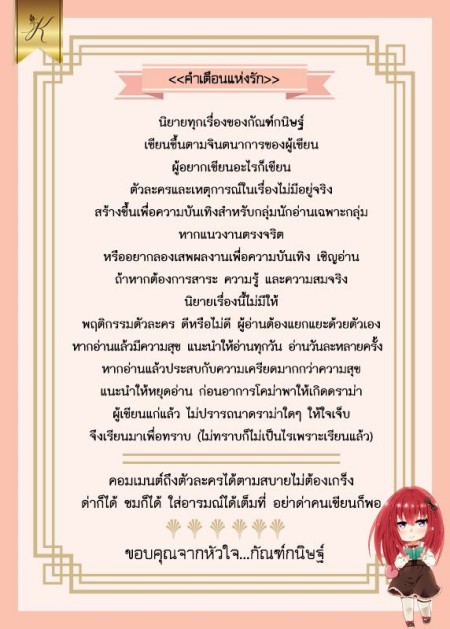 นิยายตีพิมพ์กับสำนักพิมพ์ไลต์ออฟเลิฟ ใช้นามปากกา >> กัณฑ์กนิษฐ์