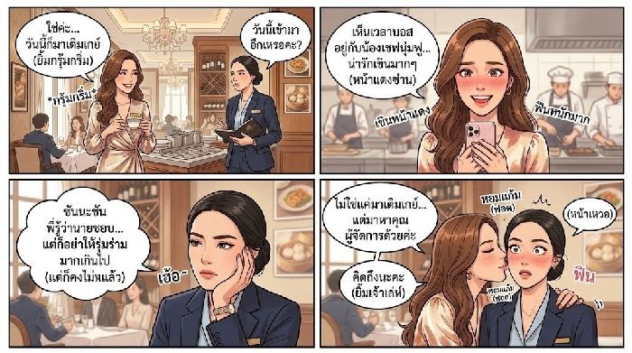 เซเลบริตี้สาววายตัวแม่ ลูกค้าประจำที่ไม่ได้มาเพื่อกินอาหารอย่างเดียว แต่มาเพื่อเก็บโมเมนต์ "บอสกับเชฟ" ไปลงกลุ่มลับ และกำลังวางแผนรุกคืบหัวใจผู้จัดการคนสวย