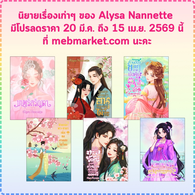 ⭐ นิยายเก่าๆ ของไรท์ จะเข้าร่วมแคมเปญลดราคาของ MEB ในวันที่ 20 มี.ค. ถึง 15 เม.ย. 2026 นี้ค่ะ