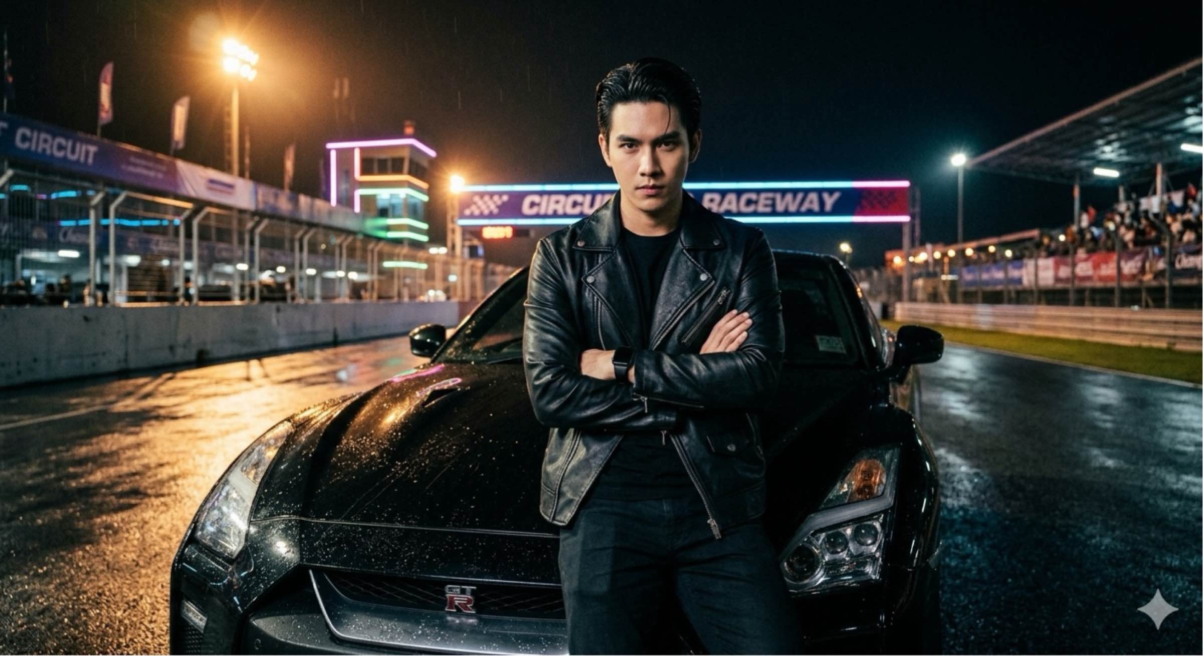 • หล่อแบบ: คุณหนู, ผิวขาวปลาสเตอร์, แต่งตัวแบรนด์เนมตั้งแต่หัวจรดเท้า ดูสะอาดสะอ้านเกินกว่าจะอยู่สนามแข่ง